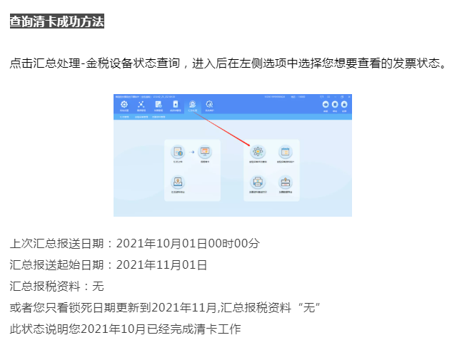 此狀態(tài)說明您2021年10月已經(jīng)完成清卡工作